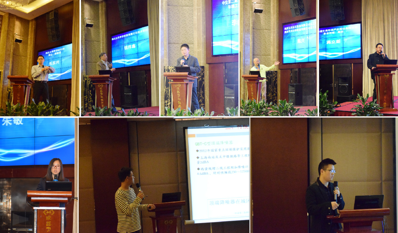 在現(xiàn)場互動(dòng)交流中,來自國內(nèi)降噪與振動(dòng)領(lǐng)域的十六位權(quán)威專家分別進(jìn)行了分享發(fā)言。其中,中國環(huán)保產(chǎn)業(yè)協(xié)會(huì)噪聲與振動(dòng)控制委員會(huì)秘書長邵斌、西南交通大學(xué)教授王其昌、四川聯(lián)合環(huán)保裝備產(chǎn)業(yè)技術(shù)研究院兼職副院長沈加曙、同濟(jì)大學(xué)聲學(xué)研究所毛東興教授、鐵三院國863課題組主任劉冀釗、中船第九設(shè)計(jì)研究院研究員呂玉恒、中國科學(xué)院聲學(xué)所研究員劉碧龍、中鐵二院工程集團(tuán)有限責(zé)任公司環(huán)境研究院高級工程師徐志勝、四川正升技術(shù)部經(jīng)理錢偉鑫等業(yè)內(nèi)知名專家學(xué)者,分別分享了“城市軌道交通減振降噪技術(shù)與實(shí)踐、現(xiàn)代鐵路軌道減振降噪技術(shù)對策與實(shí)踐、聚合微粒新型吸聲材料、城市軌道交通浮置式減振措施的減振降噪效果、高速鐵路噪聲控制、道路聲屏障、聚合微粒聲學(xué)產(chǎn)品及應(yīng)用、城市軌道交通高架段聲預(yù)測研究”等科研成果,贏得現(xiàn)場陣陣掌聲。