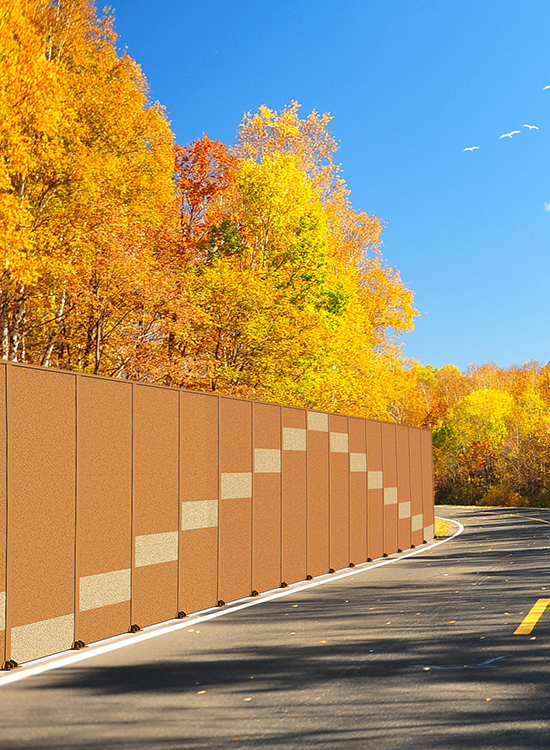 正升環(huán)境所推出的景觀聲屏障是以微粒裝飾吸聲板為主材的景觀聲屏障,它在傳統(tǒng)聲屏障具有降噪吸隔聲功能的基礎(chǔ)上,新增具有視覺審美、符合空間與環(huán)境要求、包含人文內(nèi)涵的藝術(shù)性吸隔聲屏障。
